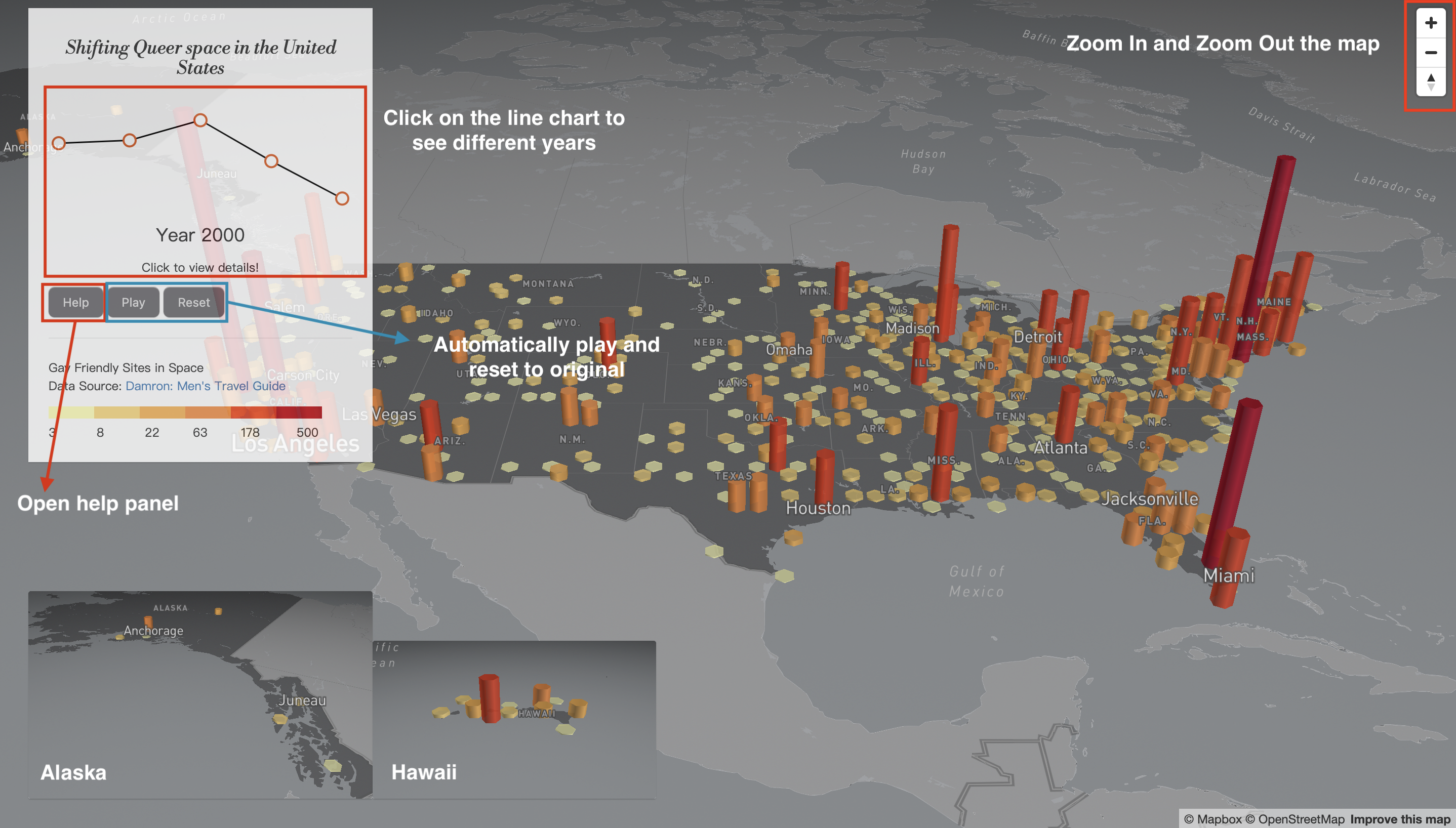 Explore the dynamic change of Queer Space in USA from 2000-2019